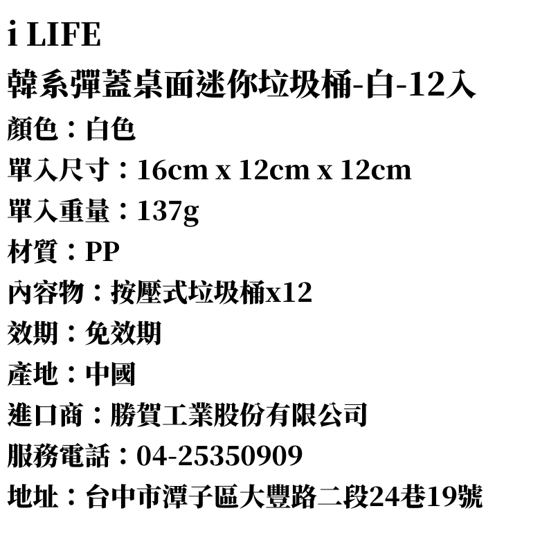 i LIFE 韓系彈蓋桌面迷你垃圾桶-白-12入