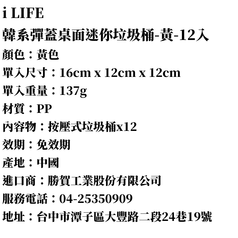 i LIFE 韓系彈蓋桌面迷你垃圾桶-黃-12入