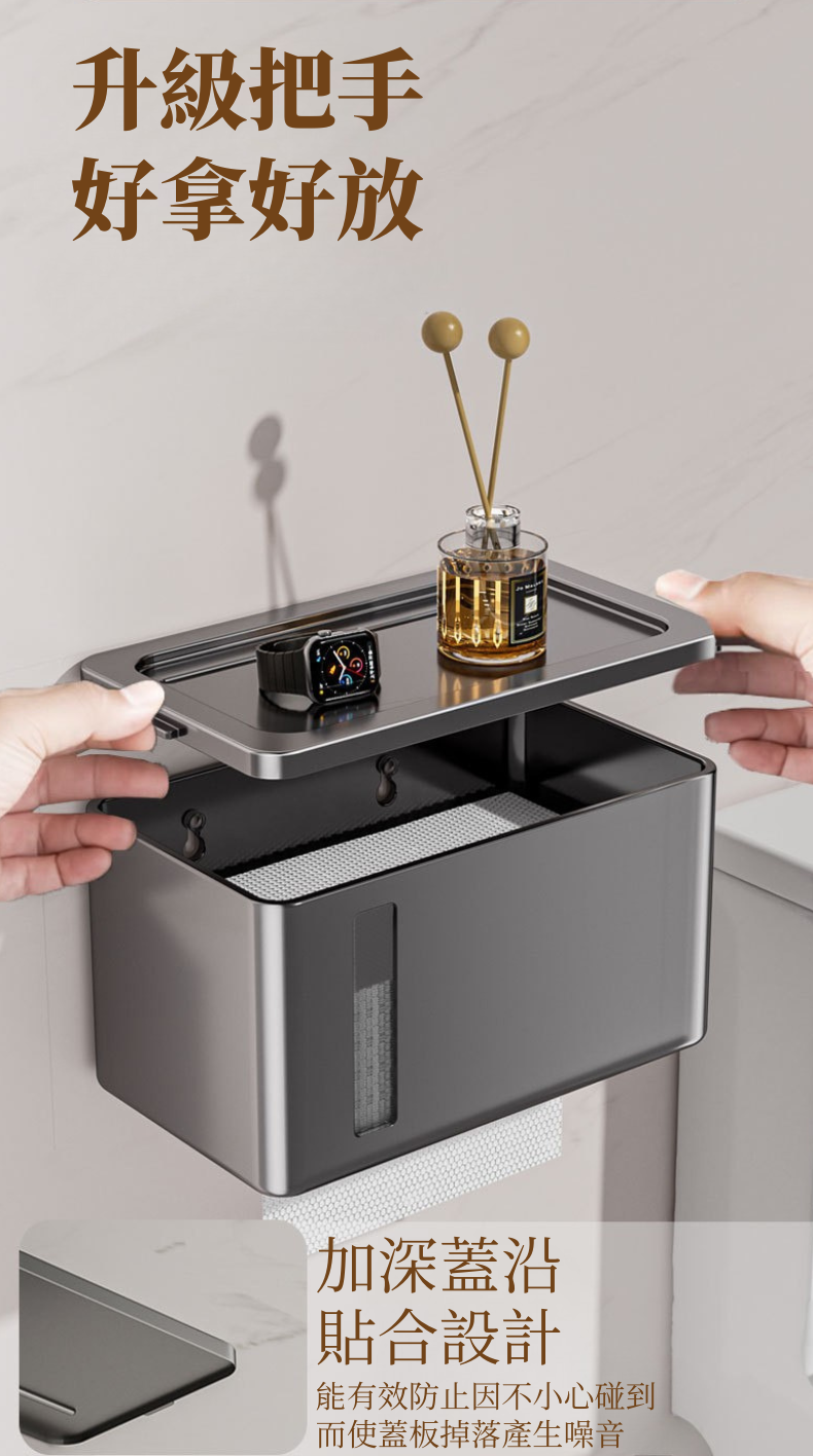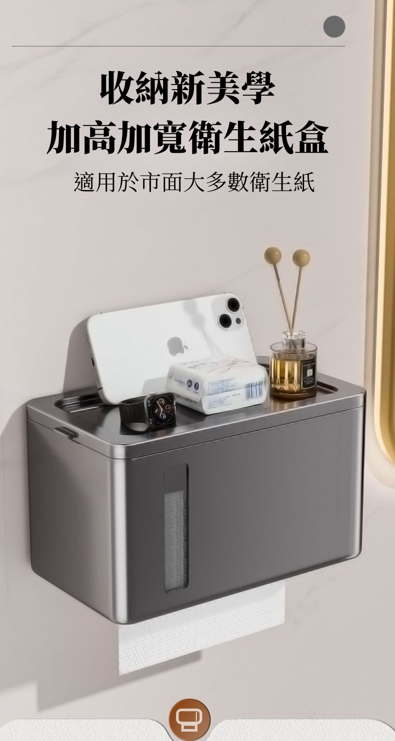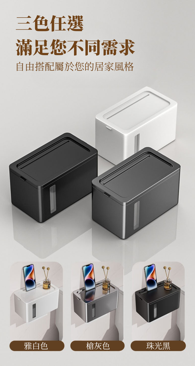i LIFE 多用途防水衛生紙架-無痕貼式-黑-1入