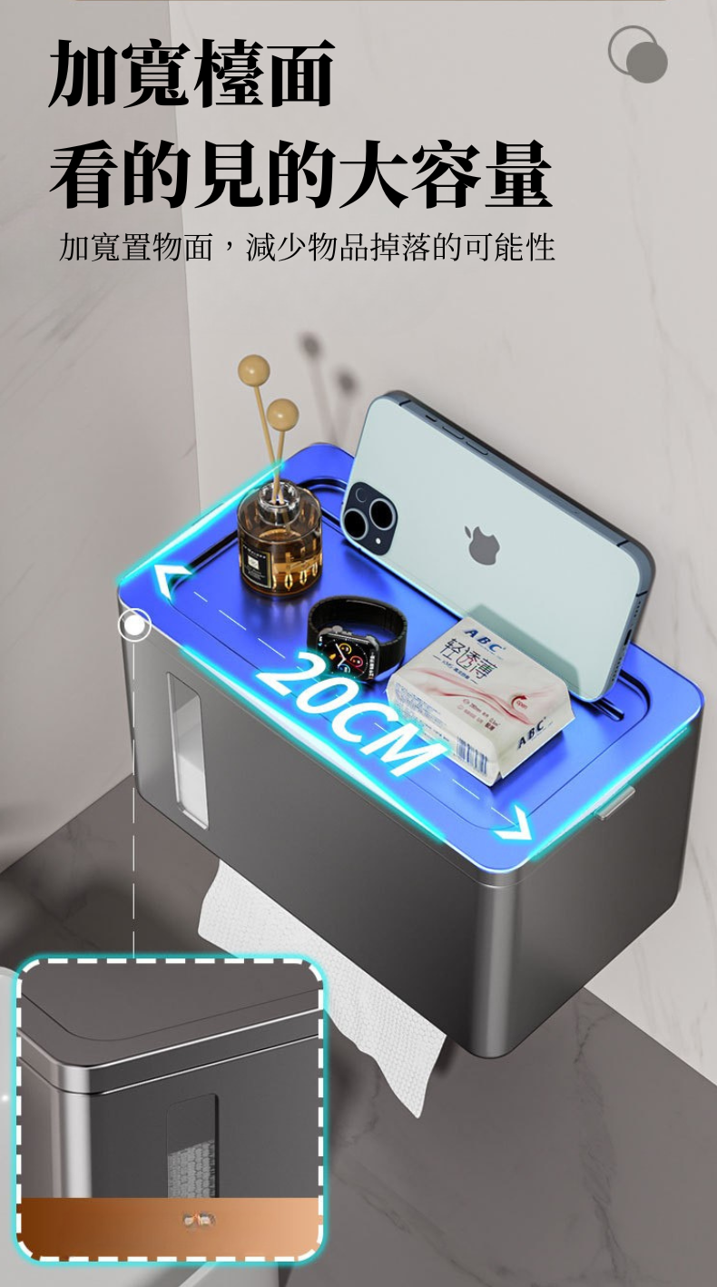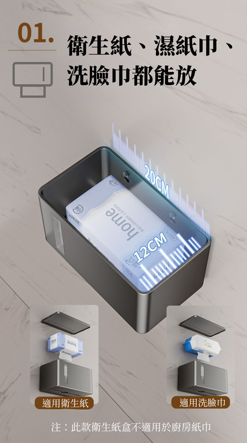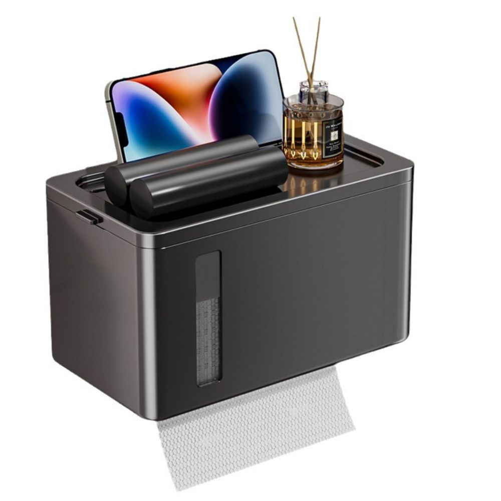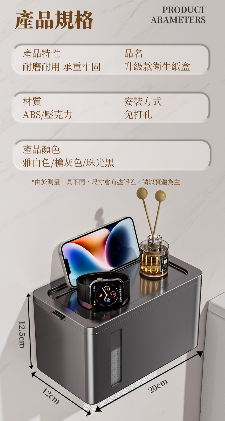 i LIFE 多用途防水衛生紙架-無痕貼式-黑-1入
