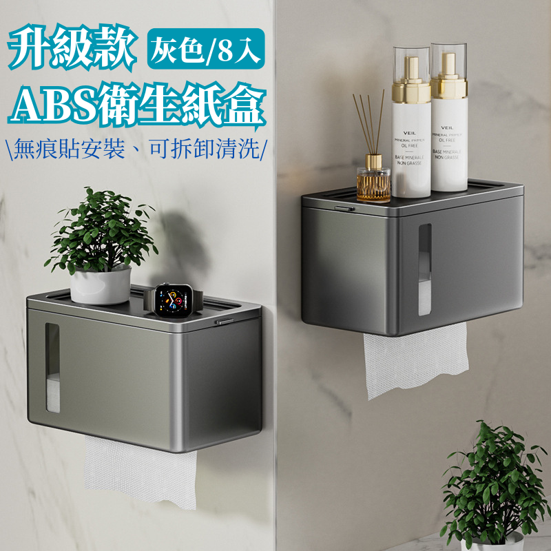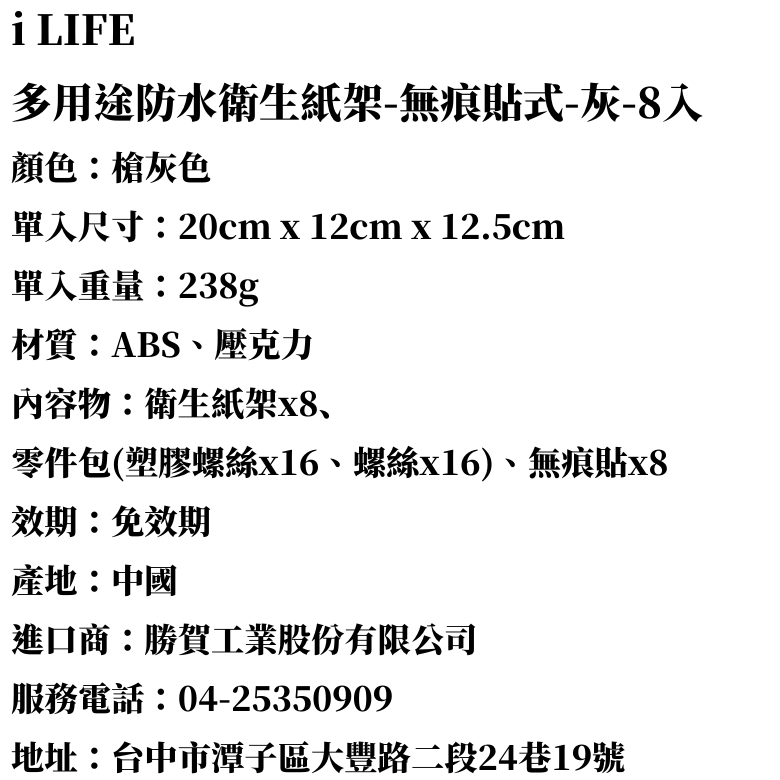 i LIFE 多用途防水衛生紙架-無痕貼式-灰-8入