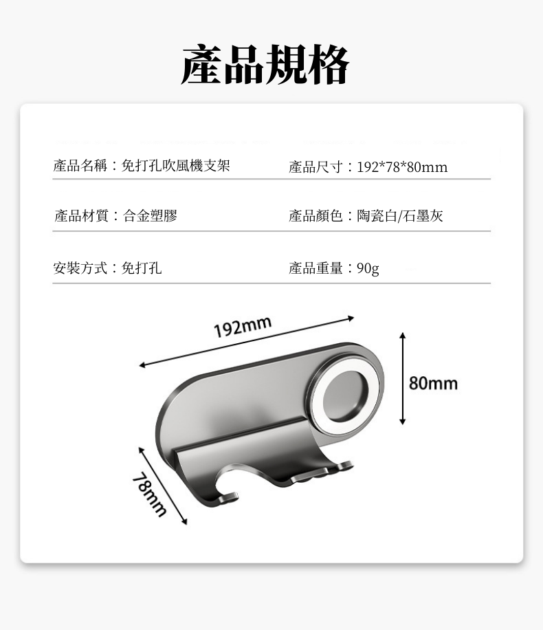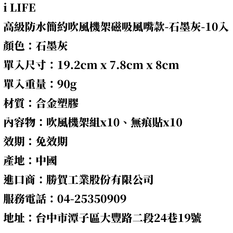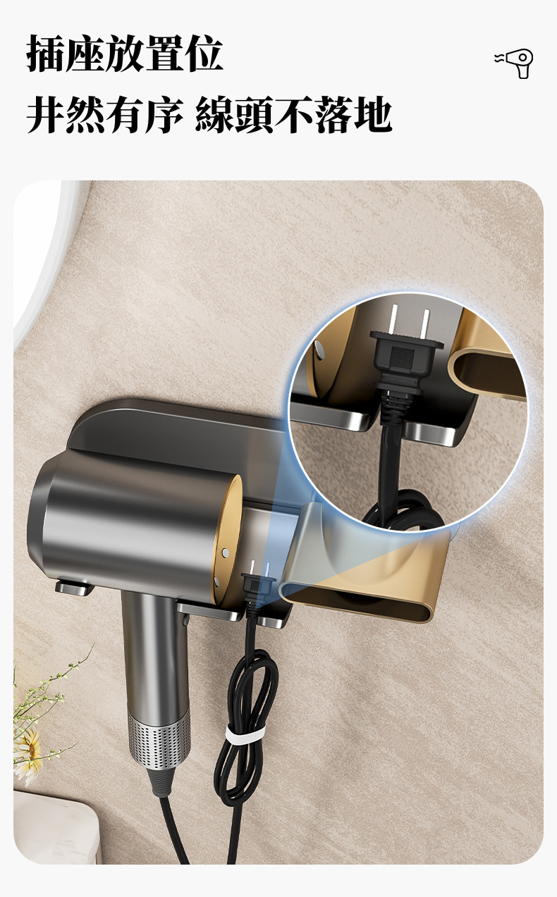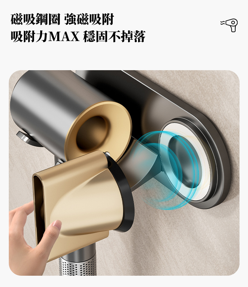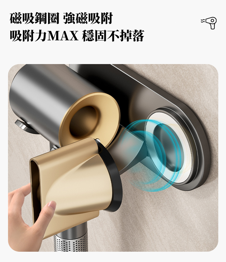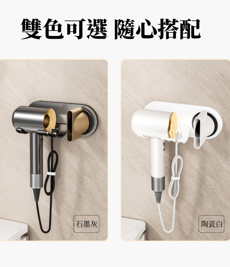 i LIFE 高級防水簡約吹風機架磁吸風嘴款-石墨灰-10入