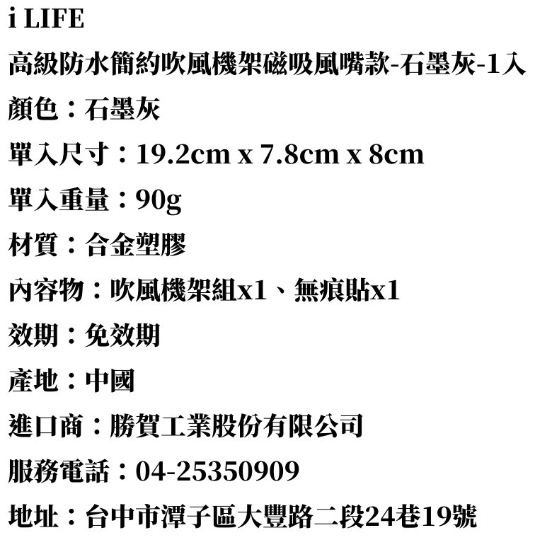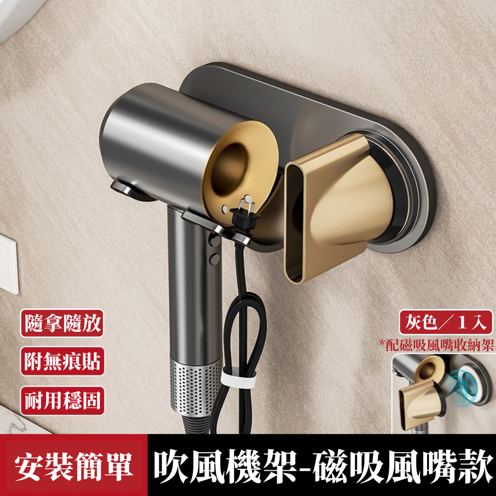 i LIFE 高級防水簡約吹風機架磁吸風嘴款-石墨灰-1入