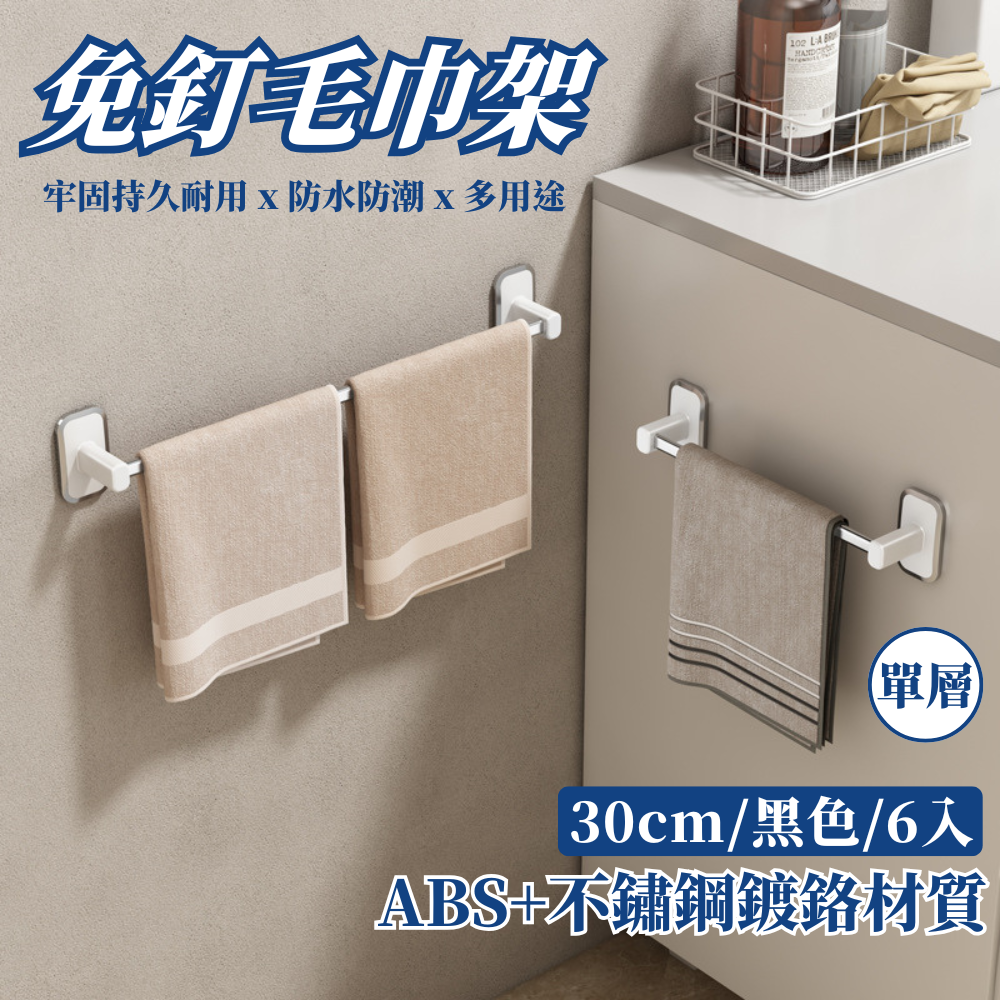 i LIFE 簡約風多功能置物毛巾架-免打孔-黑-30CM--6入