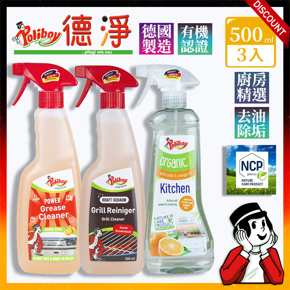 德國原裝-廚房清潔任選搭配三入組合-德淨poliboy-強力除油垢/烤盤清潔/廚房去汙-500ml*3