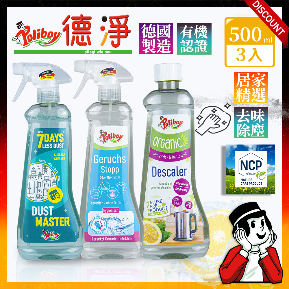居家清潔任選搭配三入組合-德淨poliboy-異味消臭/熱水壺去水垢/除塵大師-500ml*3 台灣總代理
