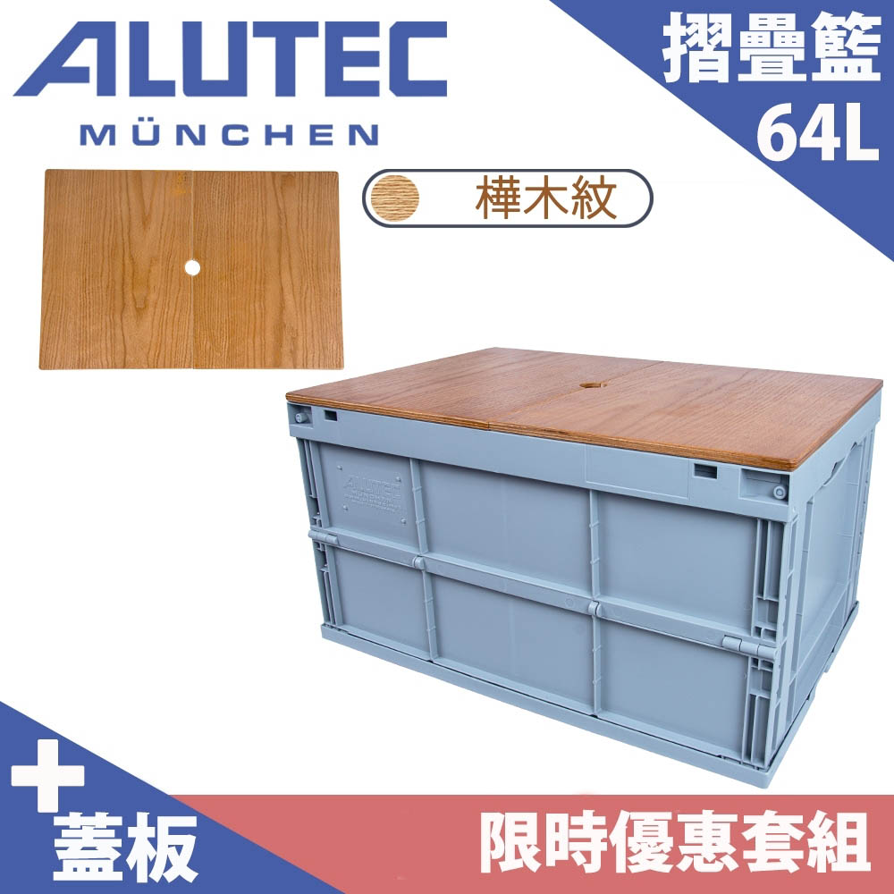 ALUTEC加深摺疊收納籃 工具收納 露營收納-64L+樺木紋蓋板