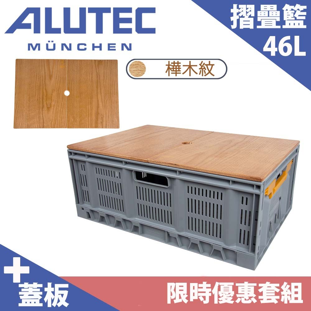 ALUTEC輕量化摺疊收納籃 工具收納 露營收納-46L+樺木紋蓋板