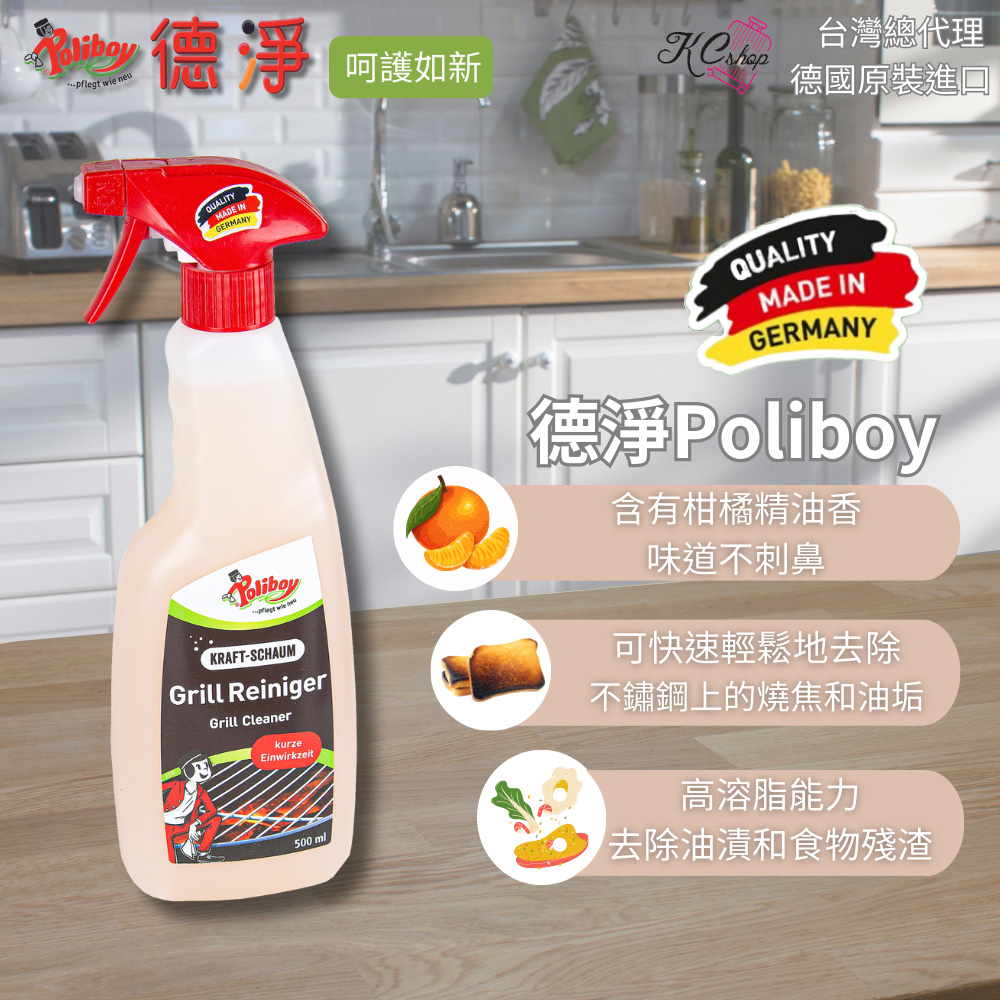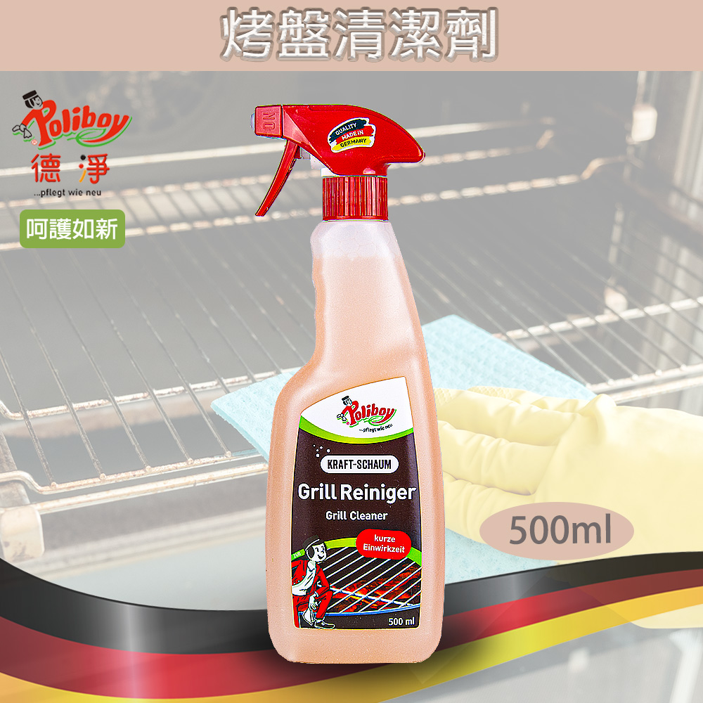POLIBOY 烤盤清潔劑可快速有效地去除烤架和烤架格柵上的汙垢。